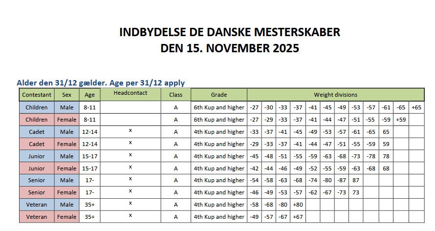 INDBYDELSE TIL DANSKE MESTERSKABER I KAMP DEN 15. NOVEMBER 2025